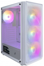 Корпус Powercase CMRMW-L4 Rhombus X4 White, Tempered Glass, Mesh, 4x 120mm 5-color LED fan, белый, ATX (CMRMW-L4)